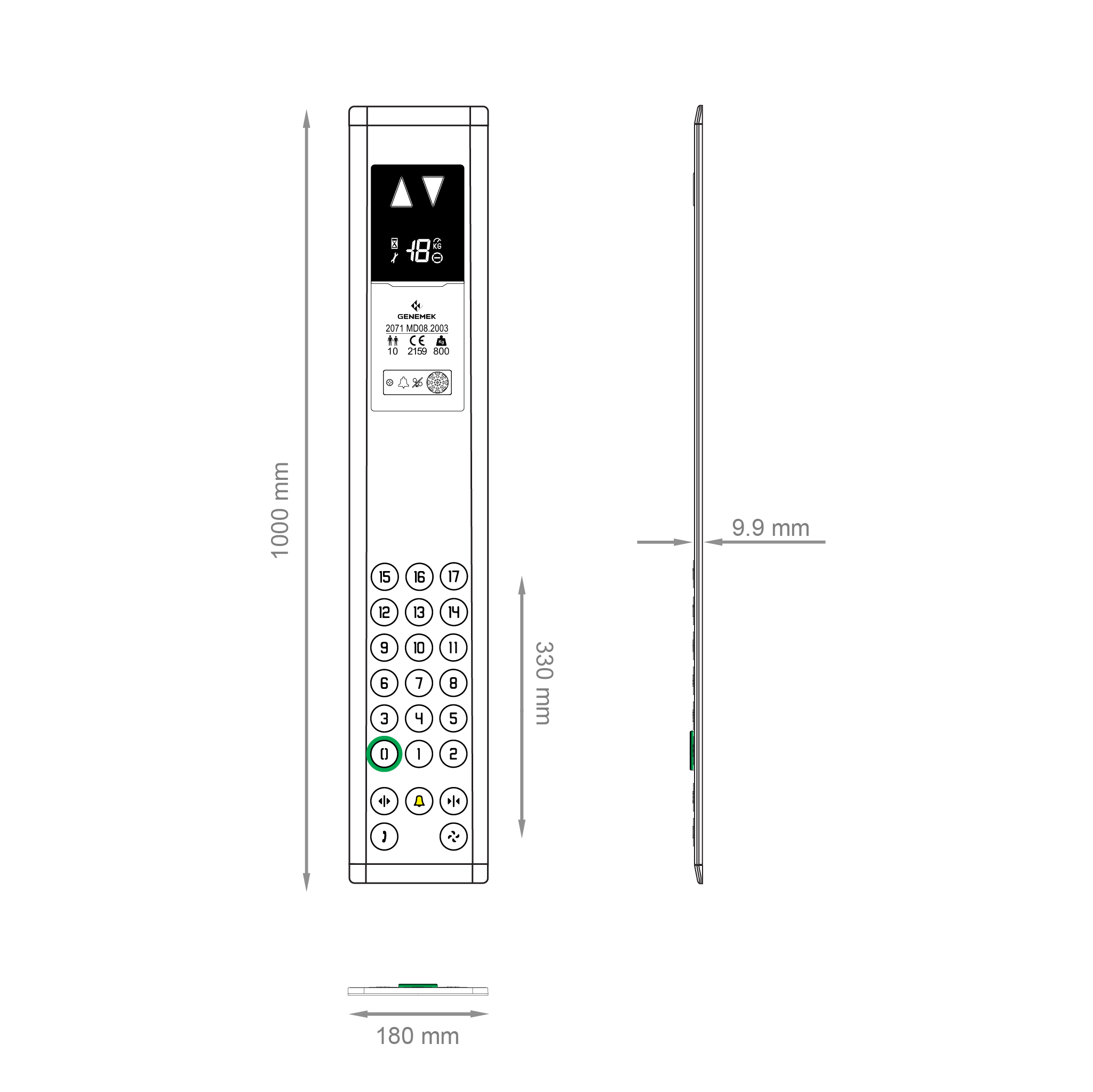 MAROC half & full height car operator panels with CDD LED matrix floor position indicator and CKS keyboard module are made for elevator controllers which uses serial (CANBUS) communication. Simple plug and play connection structure needs no time to spend on electrical and mechanical installation. CKS keyboard modules are connected to CDD