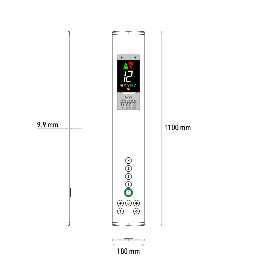 MEGA7 bütünleşik kat konum ve durum göstergesi kullanan AVOX kabin kat kasetleri, 7 segment göstergesi ve renkli aydınlatmalı ikonları ile paralel tip bağlantıyı desteklemektedir.