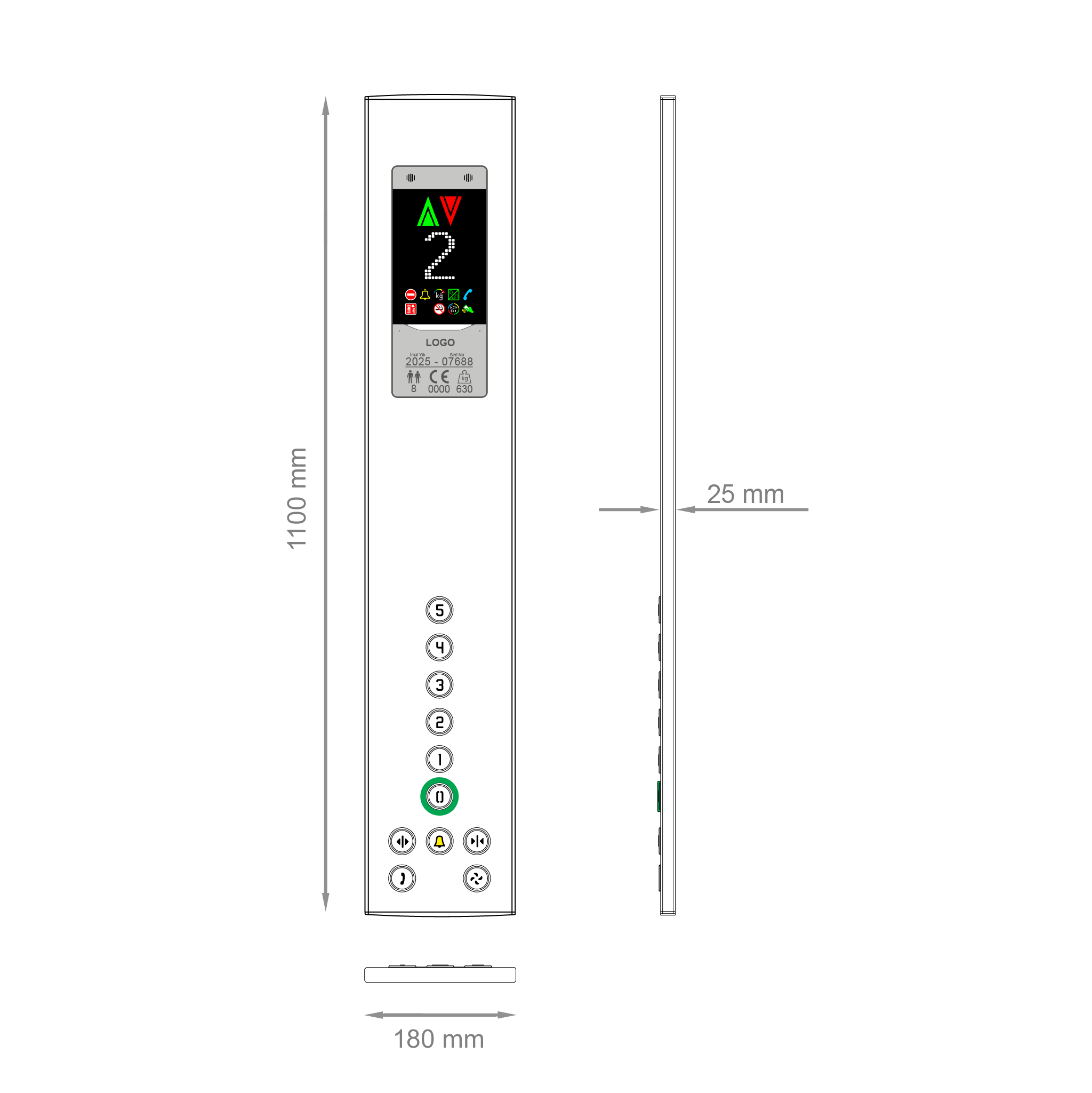 Yeni nesil renkli TFT LCD panel göstergelerin yüksek çözünürlüklü resimleri görüntüleyebilmesi ve gerçek zamanlı olarak yüksek kaliteli video oynatabilmesi büyük avantaj sağlar. MEGA7.TF'deki ekranın geniş görüş açısı, keskin net görseller sağlaması ve yoğun, parlak arkadan aydınlatması en üst düzey asansörlere değer katar. Sesli anons sistemi, acil durum ışığı, dahili çift yönlü haberleşme sistemi gibi tamamlayıcı özellikler MEGA7.TF'i sadece basit bir gösterge olmaktan çok asansörler için kabinde eksiksiz bir bilgilendirme ve iletişim aracı olmasını sağlar. EN81-20/28/70 gibi asansör standartlarına uygun olarak tasarlanmıştır.