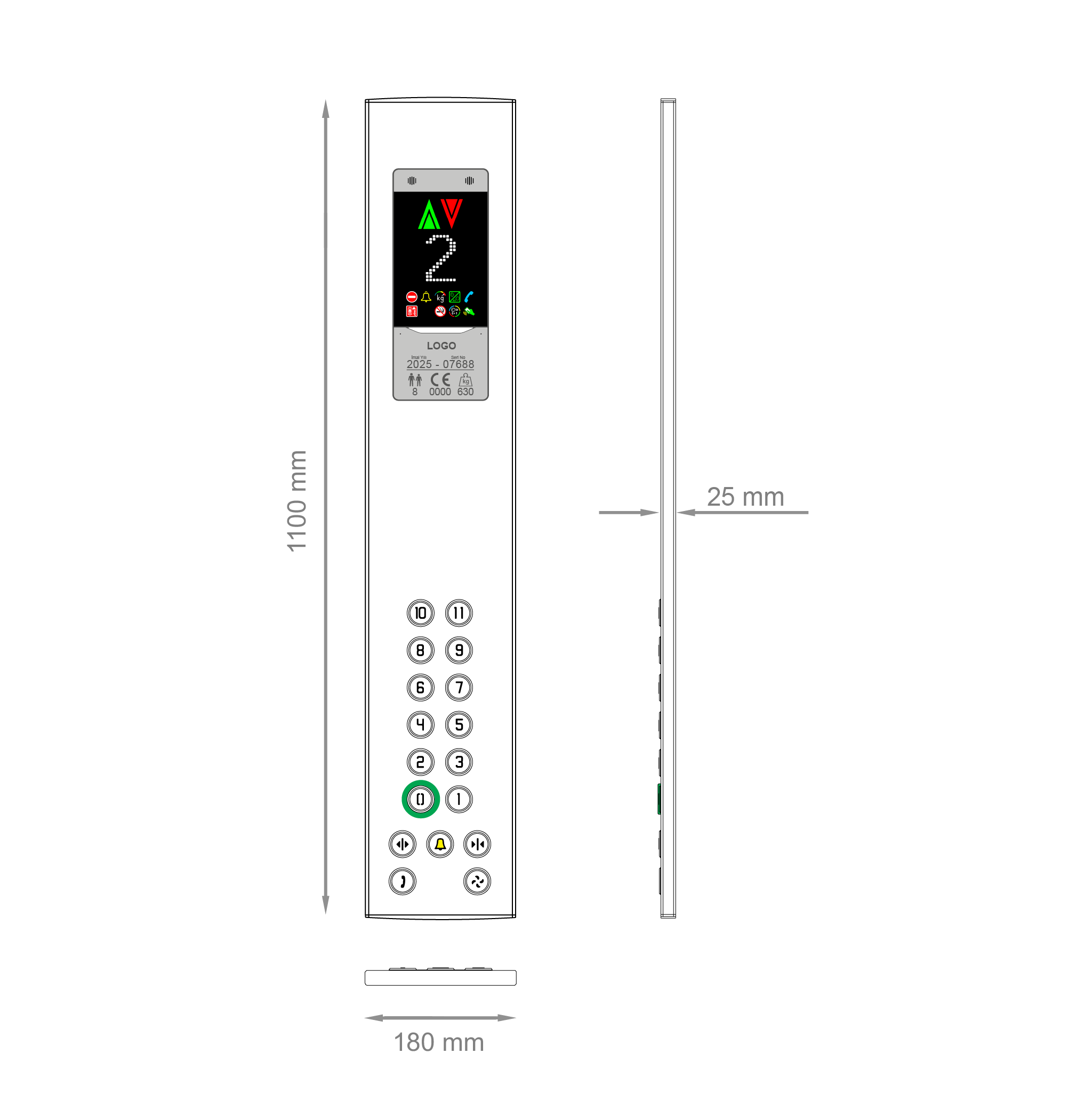 AVOX Car Operator Panels with MEGA7 all in one integrated solution. CANBUS serial type connection is used with 7″ color TFT display.