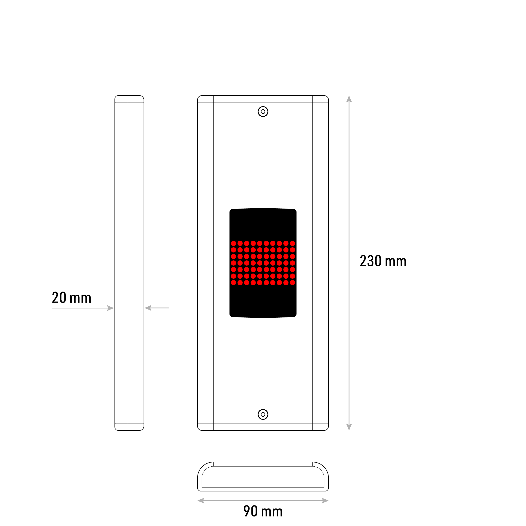 MONO – ölçüsü değişebilir sıva üstü kat kasetleri. Hem yatay hem dikey ölçülerin en ve boyları ihtiyaca göre düzenlenebilir. Yuvarlak kıvrımlı kenar tasarımı asansör holü mimarisinde daha ince ve şık görünmesini sağlar. 7 Segment & Dotmatris LED gösterge ile LCD göstergeler ile uyumludur. QUAD birinci sınıf kalite butonların kullanıldığı esnek ve sağlam tasarım pek çok farklı türde asansör uygulamasında kullanılabilir.